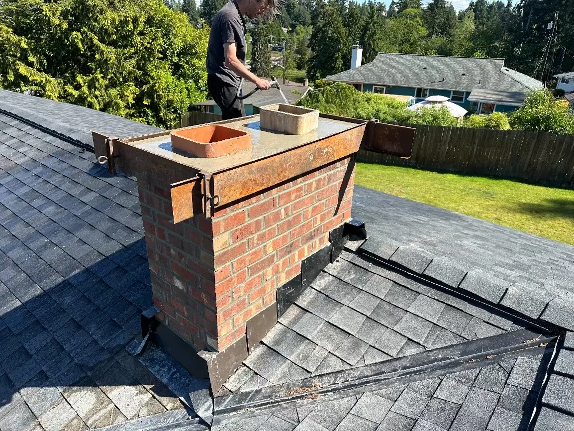 At Pinnacle Roofing Professionals, we prioritize the longevity and durability of your chimney by employing superior construction techniques for chimney crowns. Unlike traditional methods that merely apply a mortar wash—prone to cracking and deterioration—we construct our chimney crowns by setting precise forms and pouring a robust 5-inch thick, rebar-reinforced concrete slab. This approach not only ensures structural integrity but also extends the crown beyond the chimney walls to create an overhang with a drip edge, effectively directing water away from the masonry. This meticulous process adheres to the Brick Industry Association’s guidelines, which recommend reinforced cast-in-place concrete crowns that project beyond the chimney wall with a drip edge to prevent water penetration.