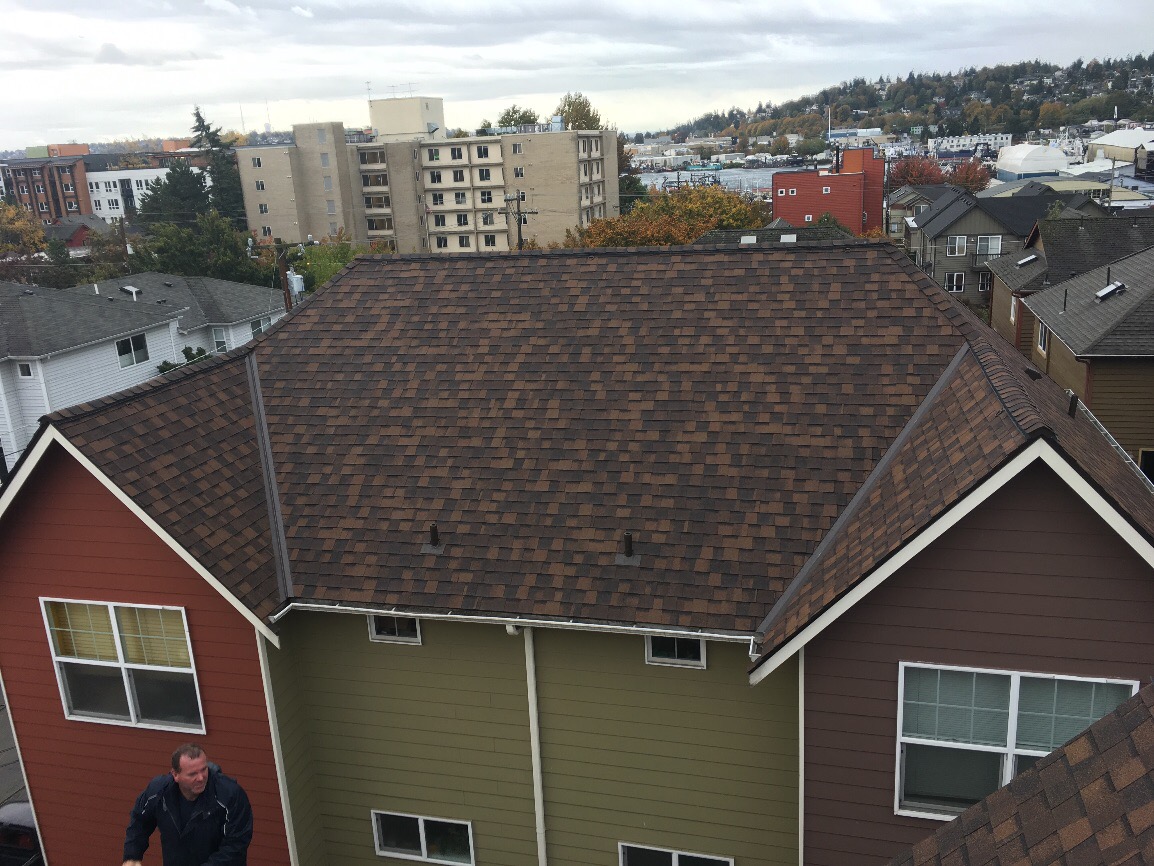 The project consisted to two 3-story buildings sitting side-by-side with limited access. The had mixed pitched of 8/12 and 12/12 respectively which made the project somewhat complicated. In short, if you have a complicated roof project call Pinnacle Roofing Professionals for your free estimate today. 206.919.3538.